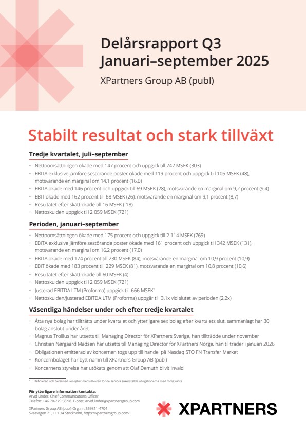 Delårsrapport januari–september 2025 XPartners Group AB (publ)